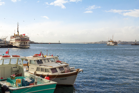 ISTANBUL, TURKEY - DECEMBER 30, 2015: Fishing boats and ferry boats in the harbor of Kadikoy. Kadikoy is one of the districts of the Asian side of Istanbul, famous for ict harbor