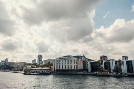ISTANBUL, TURKEY - NOVEMBER 12, 2020: Buildings on embankment near sea in Istanbul, Turkey