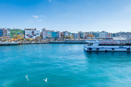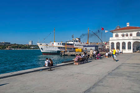 Istanbul, Turkey - April 20, 2016: People are walking on the coast of Kadikoy near the port in Istanbul, Turkey