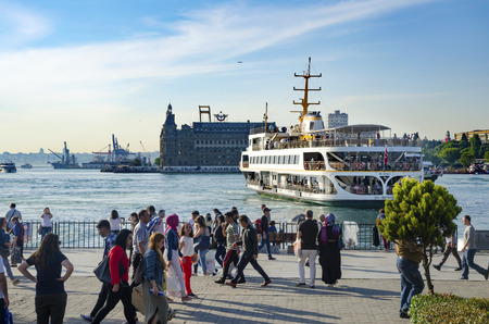Istanbul, Turkey - Mayer 29, 2016: the Strait of Istanbul, Kadikoy Pier, Haydarpasa train station and ferries.strait of Istanbul, Kadikoy Pier, the Strait of Istanbul, Kadikoy Pier and Ferries. Ferries are the most popular form of public transport in Ista