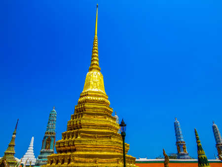 Golden pagoda at Wat Phra Kaew also known as Temple of the Emerald Buddha , Grand palace Wat Phra Kaew is one of Bangkok s most famous tourist sites and it was built in 1782 at Bangkok, Thailand