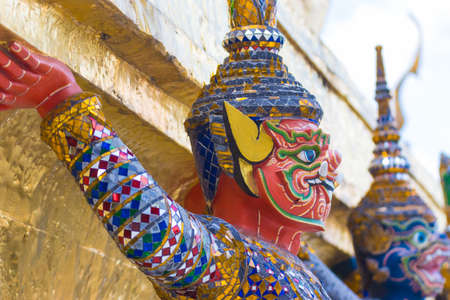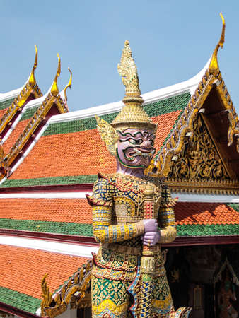 Watchmen demons at the entrance to the Temple of the Emerald Buddha Wat Phra Kaew, located next to the Grand Palace in Bangkok.