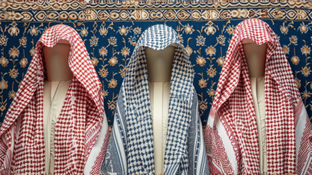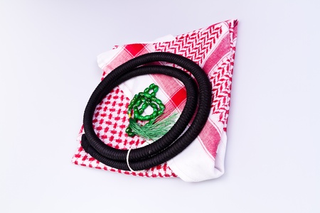 A close up image of a Ghutrah also known as the Keffiyeh along with the agal and skull cap These items of clothing are usually worn by men as a head-dress in Arab Countries
