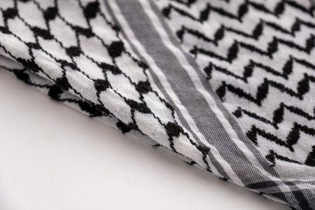 Palestinian keffiyeh on white background isolated with mock up and copy space