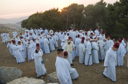 NABLUS, WEST BANK - JUNE 24 : Members of the ancient Samaritan community during the holy day of Shavuot in Mount Gerizim on June 24 2012, Shavuot is an holyday commemoretas the anniversary of the day god have given the Torah to the Israelites