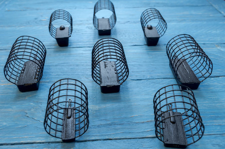 Close up view of fishing baits and Fishing gear for fish. Dry feed for fishing