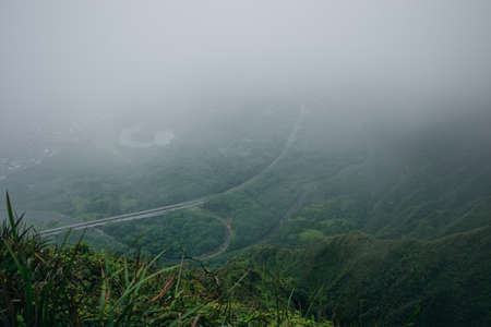 Mountain road in fog in Taiwan