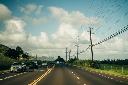 beautiful road through the nature of kauai, hawaii. high quality photo