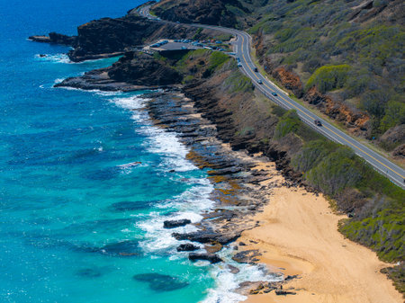 Coastal View of Oahu with Cliffside Road and Turquoise Waters