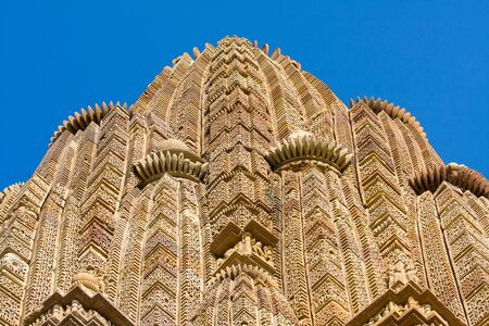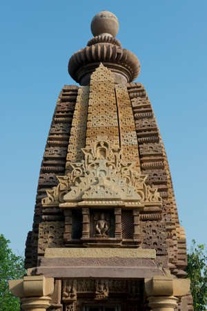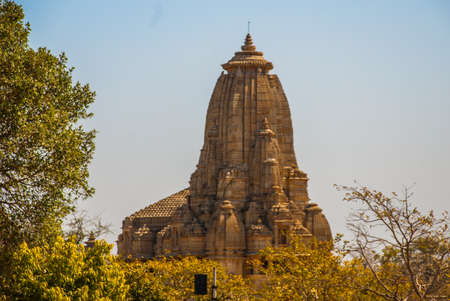 View of Lakshmana Temple spire in Khajuraho, India