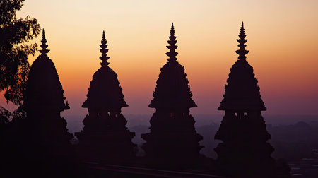 Sunrise over a Hindu temple with space for text in the sky. Dawn of a new day.