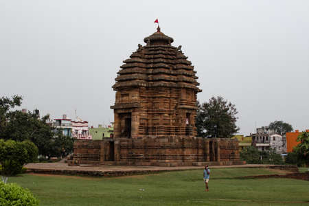 Bhubaneswar, India - February 4, 2020: View of Bhaskaraswar Temple with an unidentified man on his phone on February 4, 2020 in Bhubaneswar, India