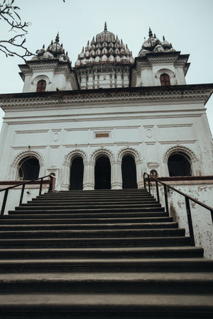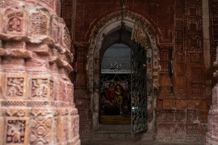 Beautiful details and bas reliefs of ancient Hindu Pancharatna Temple (Temple of the Five Jewels) in Puthia Bangladesh