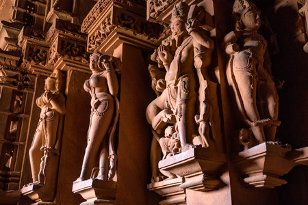 Famous temples of Khajuraho with sculptures, India