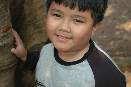 Happy Asian little boy enjoy playing and walking at the park. Little boy portrait at the park and playground.