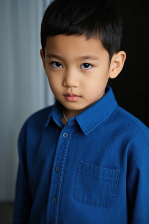 Young Boy Gazing Directly at Camera With Curiosity and Innocence