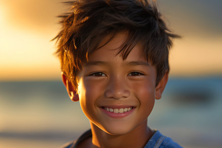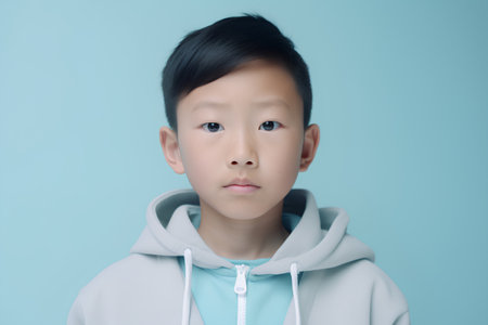 A smiling Asian boy, exuding joy, set against a colorful plain background, captured in a commercial photography style, perfect for advertising and marketing campaigns