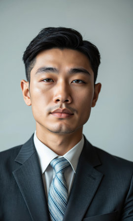 Asian Male Harmonic Convergence Asian man, 45s, unifying attire, bringing diverse elements into resonance, peaceful expression, .