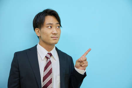 A perplexed Asian man in a suit with exaggerated messy hair and swirling black lines above his head, depicting confusion or chaotic thoughts.