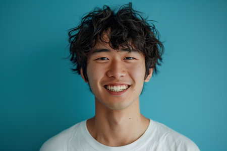Teen Chinese Man with Brown Curly Hair 1990s style Illustration.
