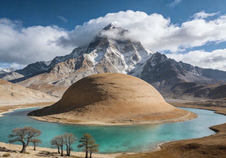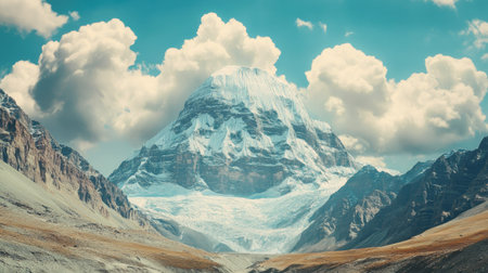 Landscape of Sacred Mount Kailash and Om Parvat, Kailash, Tibet. Mystery Himalayan snow mountains AI-Generated
