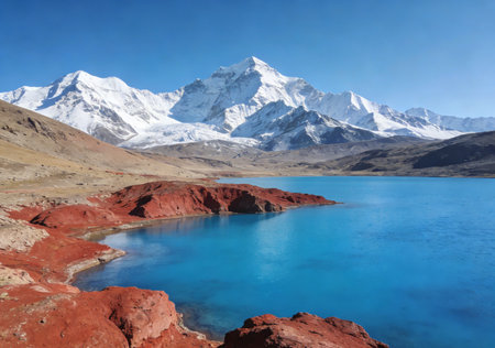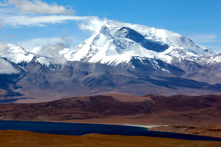 Mountain landscape with snow and clear blue sky in Tibet, China