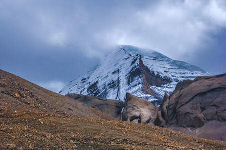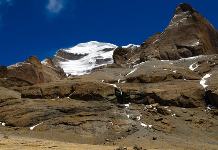 Sacred Mount Kailash with space for text in the sky. Abode of Lord Shiva.