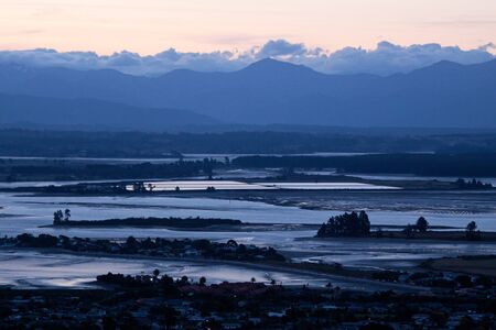 Landscape in blue evening light near Nelson, South Island, New Zealand