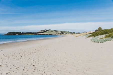 sunny Australian beach in Cremorne, Tasmania looking beautiful and deserted in winter