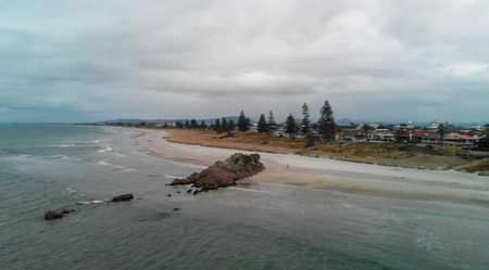 HOBART, TASMANIA - July 4th, 2019: detail of Kingston Beach in winter, Tasmanian beach looking peaceful and deserted at dusk
