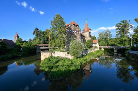 The castle Wenzel on a small island on the river Pegnitz in Lauf an der Pegnitz
