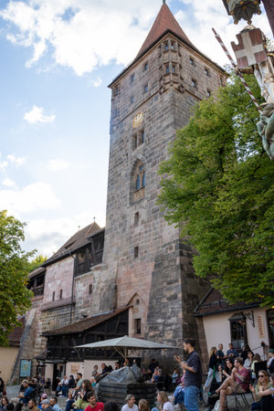 View of the tower of the medieval city of Nuremberg, Germany