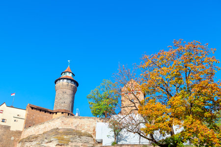 Sinwell Tower part of Imperial Castle of Nuremberg . Autumn in Germany