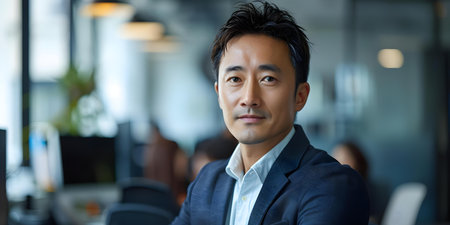 Confident Asian young man portrait. Face man person happy male. Generate Ai