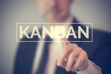 Businessman touching word/button Kanban in virtual UI