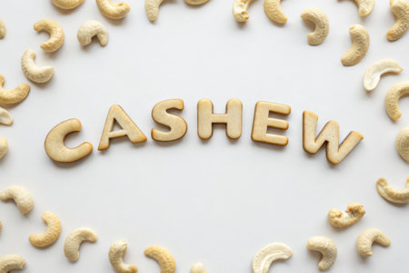 cashews isolated on light background. Flat lay