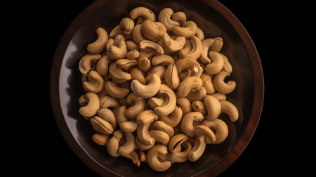 Cashew nuts on dark background. Healthy snack concept. Organic cashew. Generative AI.