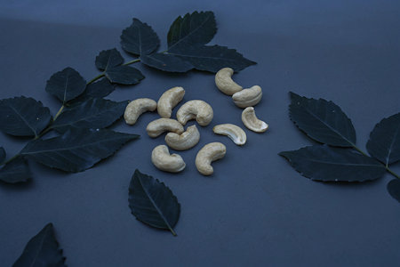 some cashew nuts arranged in a blue background