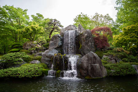 Idyllic landscape of Japanese garden at summer day. Nagoya is a manufacturing and shipping hub in central Honshu.