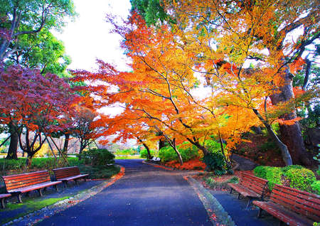 Autumn colors, Fall foliage at Zama Yatoyama Koen Park. Located in Zama-shi, Kanagawa Prefecture, Japan