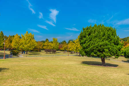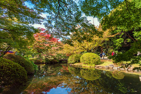 TOKYO, JAPAN - OCTOBER 31, 2017: Autumn in the Shinjuku park. Copy space for text