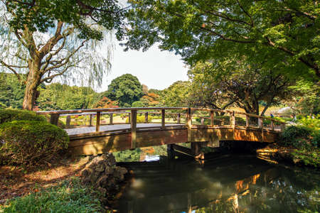View of the bridge in Shinjuku park, Tokyo, Japan. Copy space for text