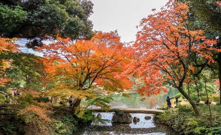 TOKYO, JAPAN - NOVEMBER 16, 2018: Day scene of Koishikawa Korakuen Garden with autumn leaves, Tokyo prefecture, Japan