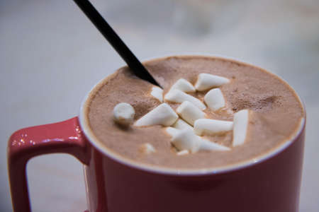 Hot chocolate cup in the morning, hot chocolate cup breakfast, breakfast of the day, hot drink