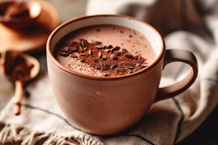 Realistic hot chocolate with neutral colors and warm lighting creates a cozy and highly detailed atmosphere in a restaurant with a medium shot. Generative AI Generated