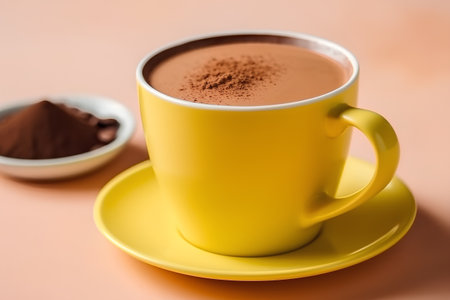 Photo of a cup of hot chocolate on yellow background