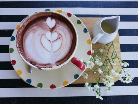 hot drink with heart shape cocoa mark