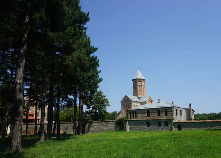 Telavi Akhali Shuamta Monastery Church Behind the Walls with Clean Blue Sky
