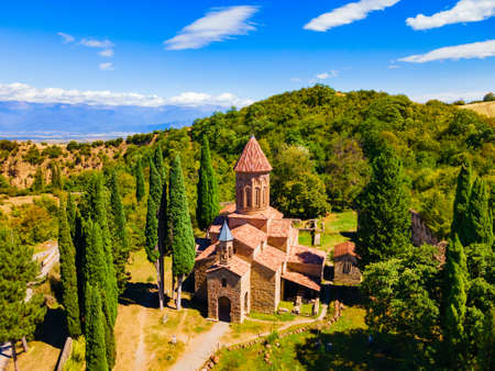 Ikalto Monastery Complex aerial panoramic view in Kakheti. Kakheti is a region in eastern Georgia with Telavi as its capital.