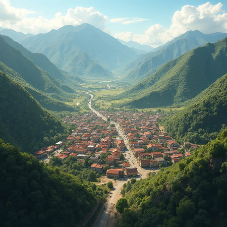 Beautiful view of a small mountain village in Imereti, Georgia. Landscape